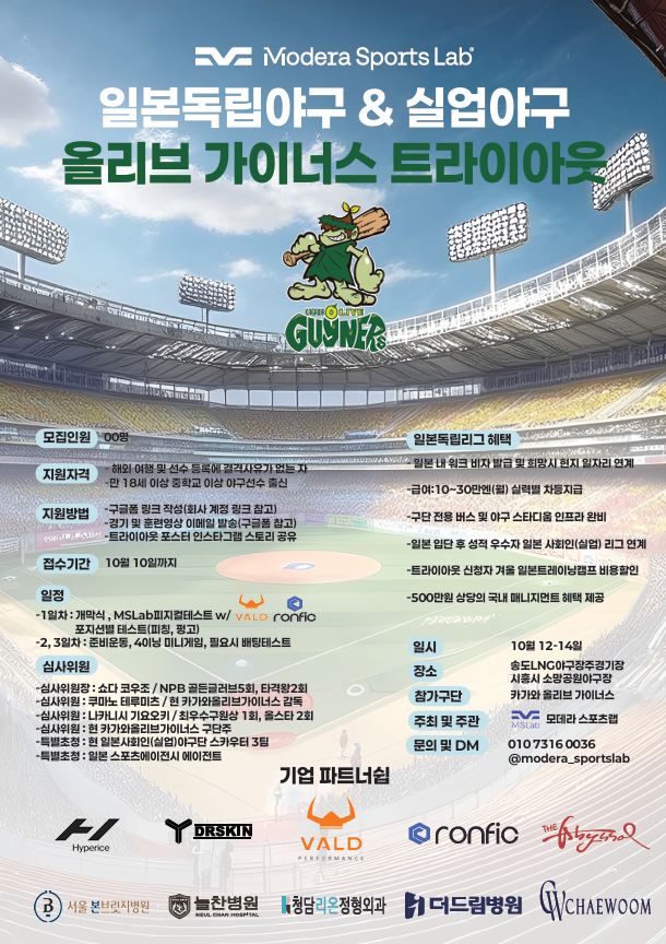일본독립야구 카가와올리브가이너스 한국 트라이아웃 선수모집