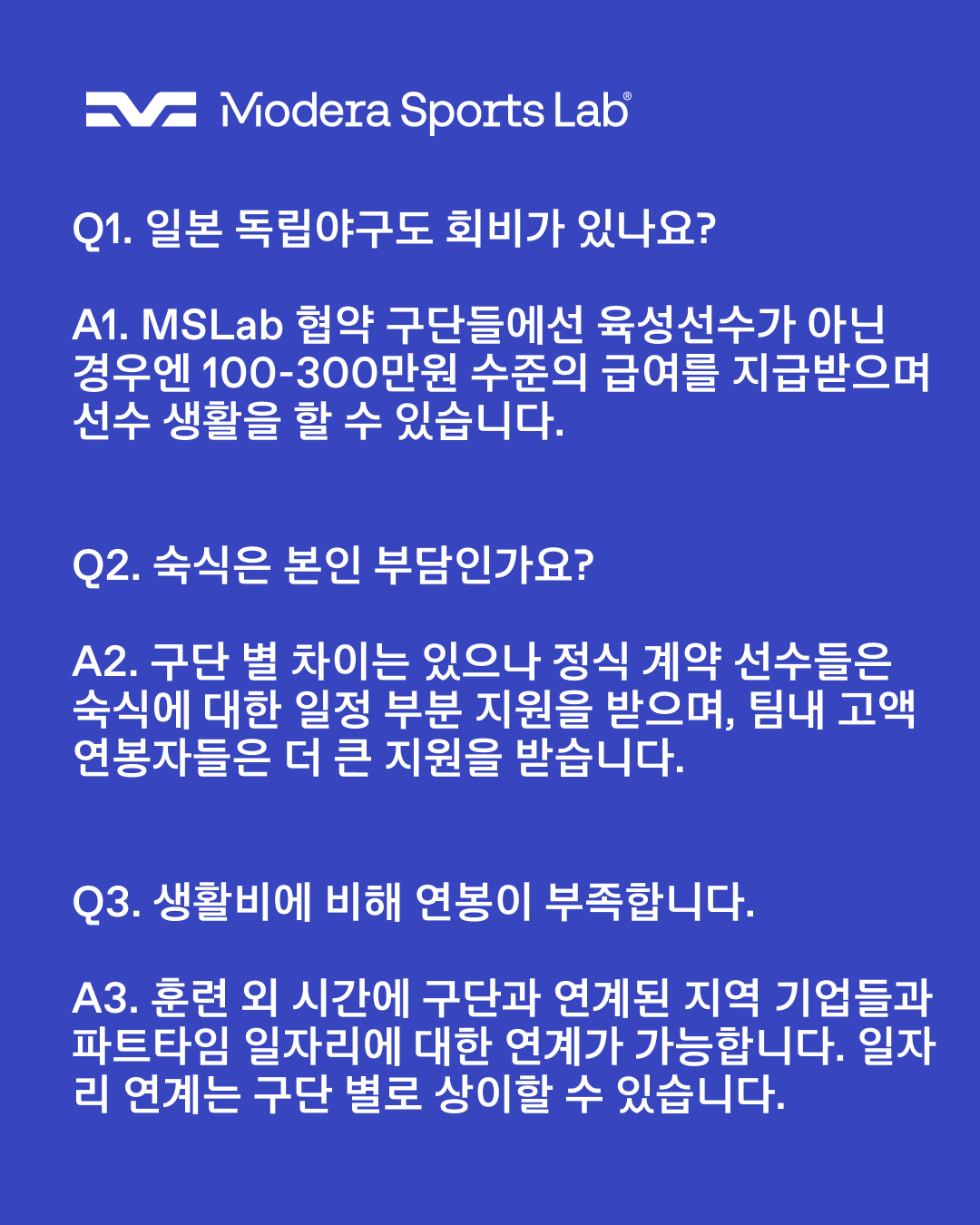 ▶ 희망 시 구단 훈련 일정 외에 가능한 현지 일자리 연계까지 지원!